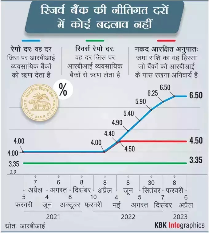 नई दिल्ली: रिजर्व बैंक ऑफ इंडिया (RBI) की मौद्रिक नीति समिति (Monetary Policy Committee) की बैठक आज खत्म हो रही है। इस वित्त वर्ष में एमपीसी की दूसरी बैठक में एक बार फिर रेपो रोट (Repo Rate) को लेकर ऐलान किया जाएगा। रिजर्व बैंक ऑफ इंडिया के गवर्नर शक्तिकांत दास (Shaktikanta Das) रेपो रेट को लेकर ऐलान करेंगे। अधिकतर जानकारों का मानना है कि इस बार भी आरबीआई रेपो रेट में कोई बदलाव नहीं कर सकता है हालांकि तस्वीर थोड़ी देर में साफ हो जाएगी। रेपो रेट के बढ़ते ही आपको लोन की ईएमआई बढ़ जाती है और घटते ही ब्याज दरों में कटौती होती है। पिछले एक साल में आरबीआई ने रेपो दरों में 2.50 फीसदी की बढ़ोतरी की है। आरबीआई के फैसले से पहले आपको रेपो रेट के बारे में जानना चाहिए। कैसे ये आपकी ईएमआई को प्रभावित करता है इसके बारे में आपको जानकारी होनी चाहिए।