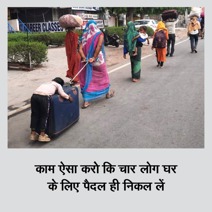 भारतीय जनता पार्टी के काम ऐसा करो वाले तंज का जवाब कांग्रेस ने लॉकडाउन के दौरान की स्थिति की तस्वीर दिखाई है। बीजेपी ने जहां इंदिरा गांधी की इमरजेंसी याद दिलाई तो वहीं कांग्रेस ने जवाब में लॉकडाउन की तस्वीर साधा कर दी। कांग्रेस ने लिखा कि काम ऐसा करो कि 4 लोग घर के लिए पैदल ही निकल लें। लॉकडाउन की यह तस्वीर उस समय खूब वायरल हुई थी। लॉकडाउन की घोषणा के बाद कई लोग एक जगह से दूसरी जगह पैदल ही निकल गए थे।