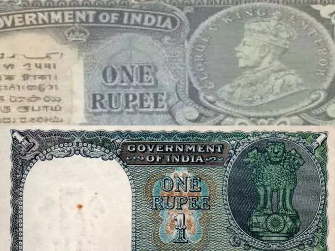 भारत सरकार ने 1949 में 1 रुपये के नोट का नया डिज़ाइन पेश किया। वॉटरमार्क विंडो में, किंग जॉर्ज को सारनाथ में अशोक स्तंभ के शेर की राजधानी के प्रतीक के साथ बदल दिया गया।