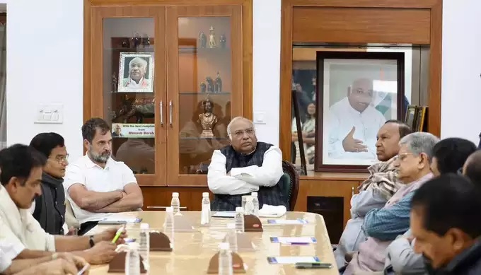 नई दिल्ली: चार राज्यों के चुनावी नतीजों में कांग्रेस की 1-3 से हार के बाद I.N.D.I.A. गठबंधन के दलों के निशाने पर यह ग्रैंड ओल्ड पार्टी आ गई है। चुनावी हार के बाद कांग्रेस भी बैकफुट पर है। इस बीच बुधवार को इंडिया गठजोड़ की बैठक कांग्रेस अध्यक्ष मल्लिकार्जुन खरगे के निवास पर हुई। इस बैठक में राहुल गांधी भी शामिल हुए। इसकी एक तस्वीर सोशल मीडिया पर वायरल हो रही है। बैठक में पार्टी के नेताओं की मंथन करती तस्वीर में हताशा और निराशा साफ दिख रही है। हालांकि, पार्टी ने दावा किया है कि 2024 में वह नतीजों को अपने पक्ष में करने के लिए जान लगा देगी।