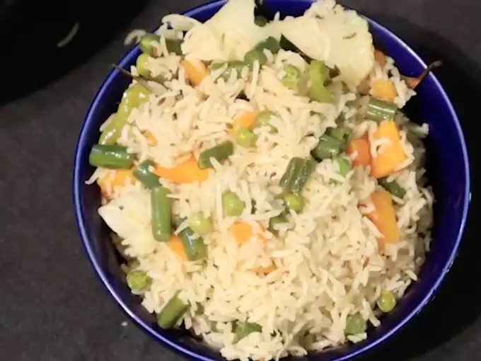वेज पुलाव तैयार है, इसे सर्विंग बाउल में निकाल लें। गार्निशिंग के लिए हरा धनिया यूज करें।