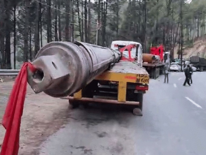 पहाड़ी पर पहुंचाई जा रही ड्रिल मशीन